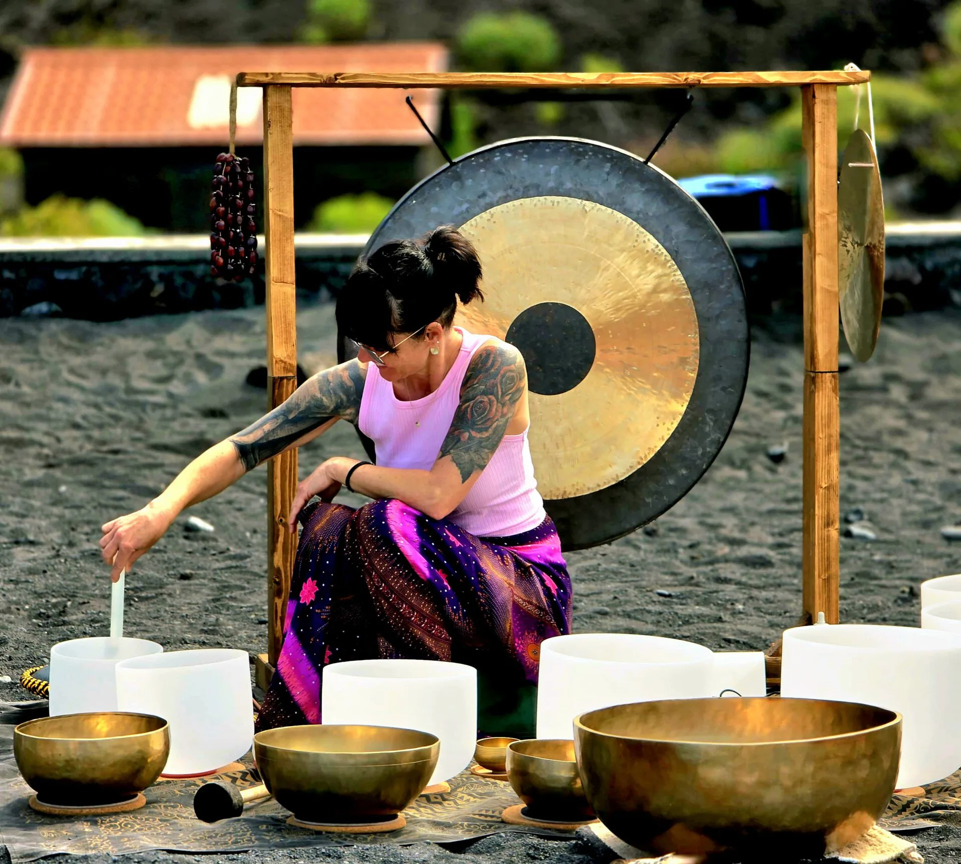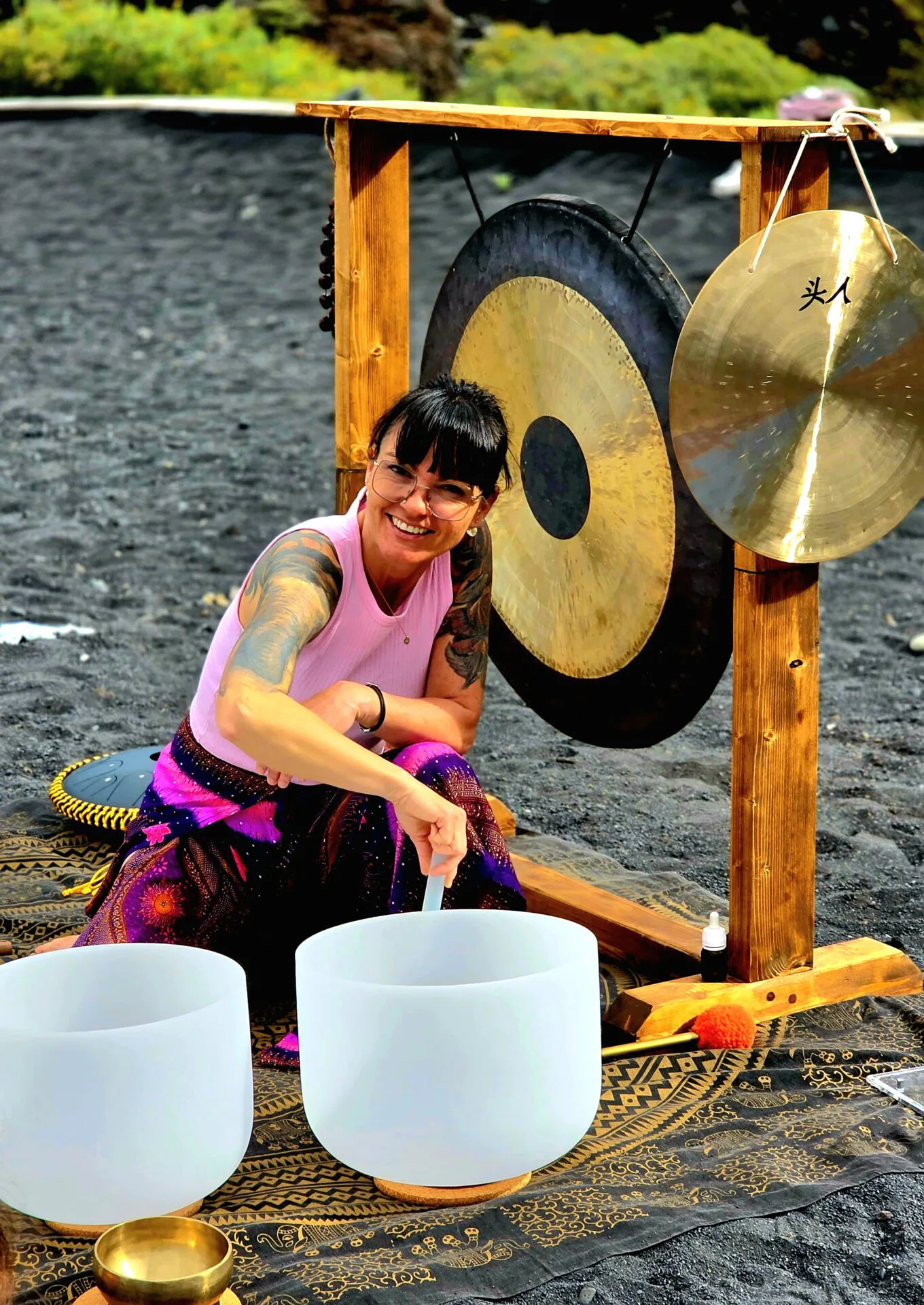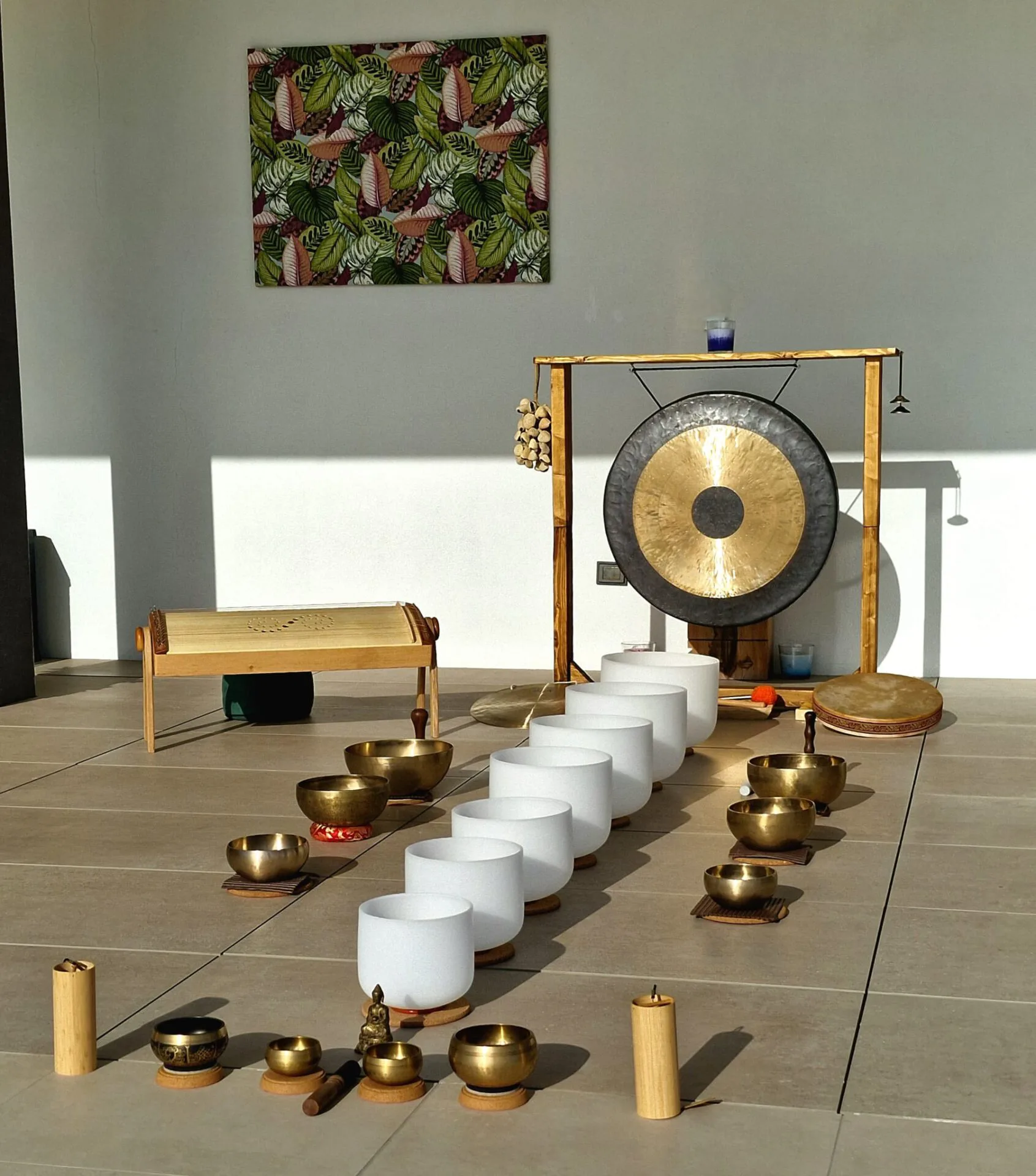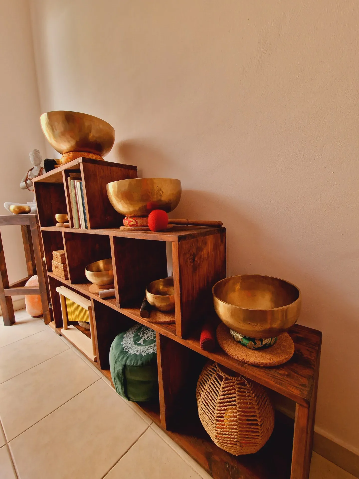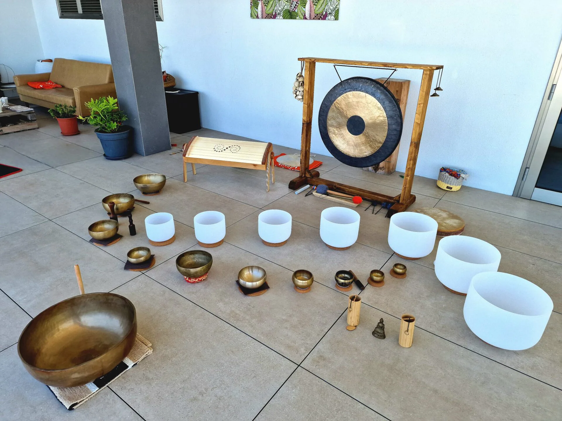 Con mis cuencos tibetanos, cuencos de cristal, mi gong y otros instrumentos, puedo ayudarte a recuperar tu ritmo, a revitalizarte y a armonizarte. Incluso puedo activar las fuerzas de autocuración de tu cuerpo para acelerar la recuperación de ciertos padecimientos o enfermedades.