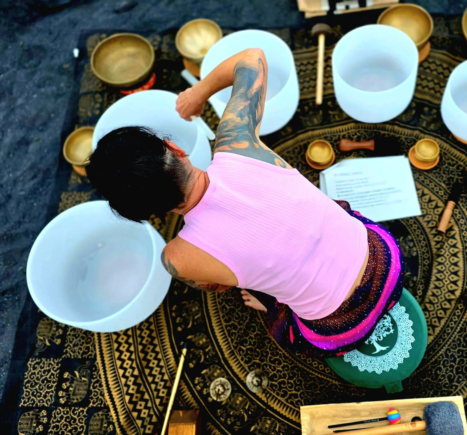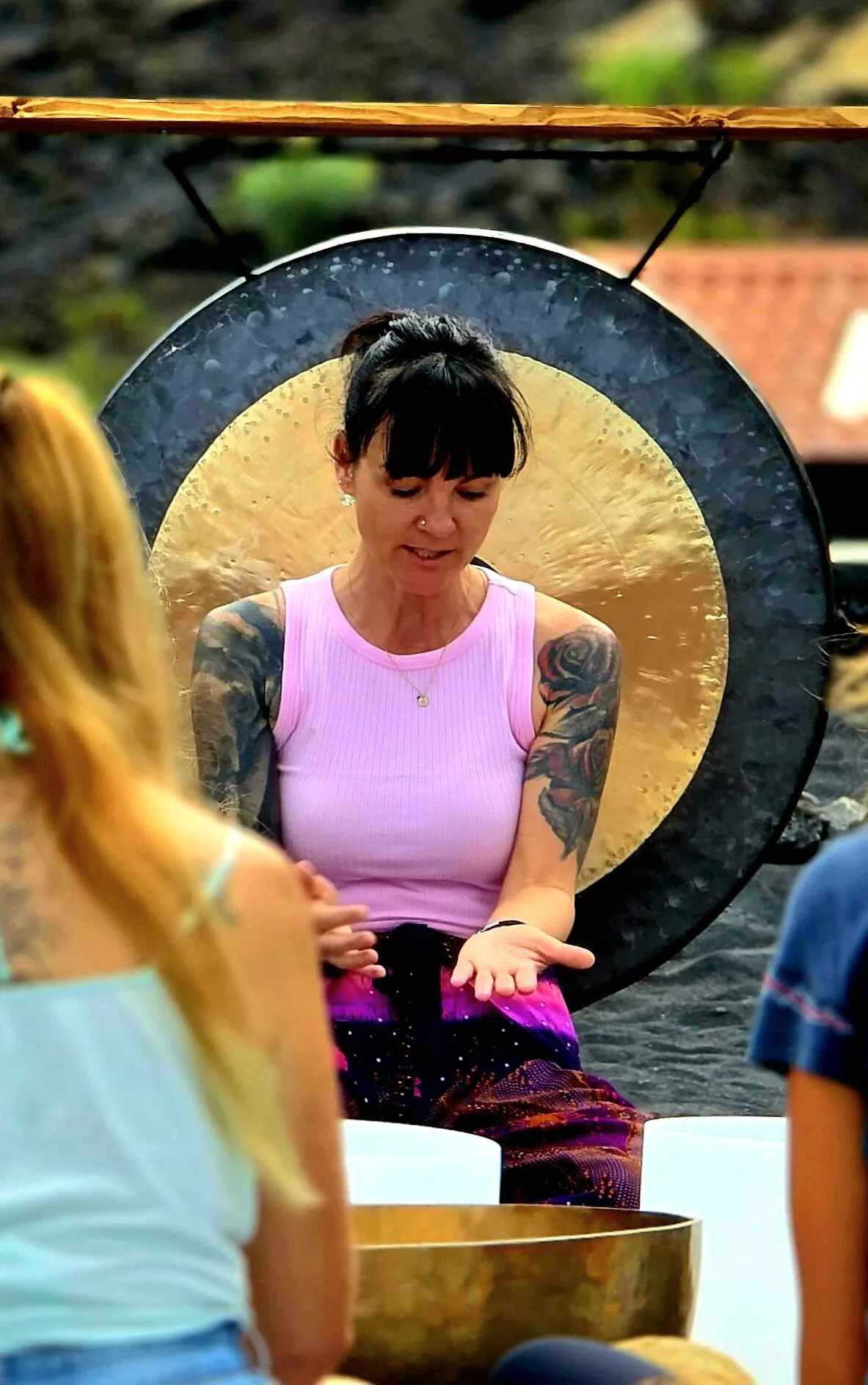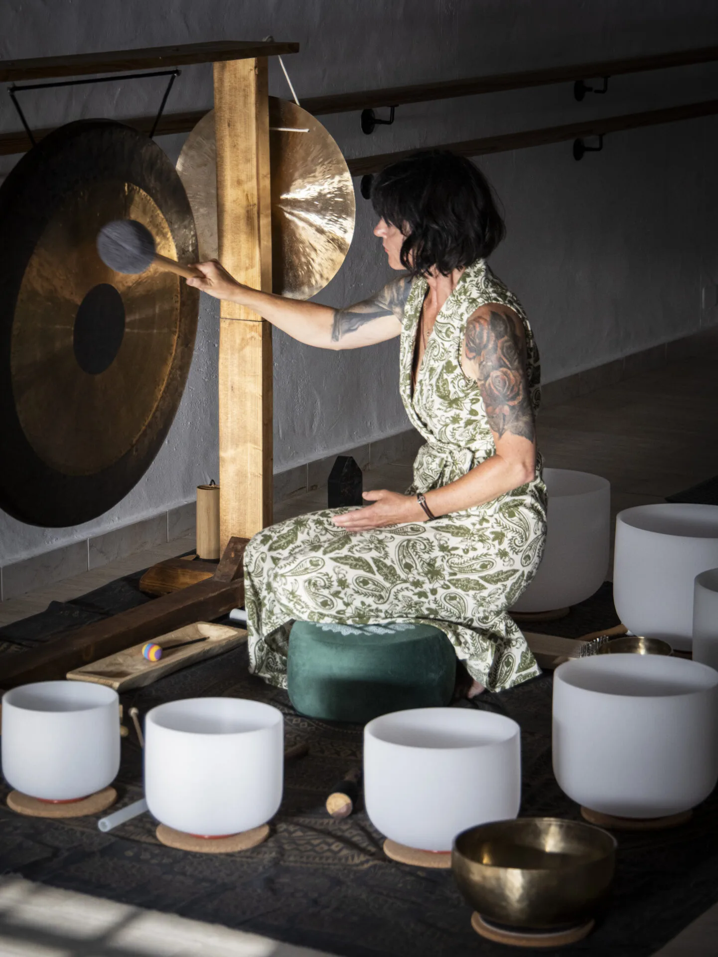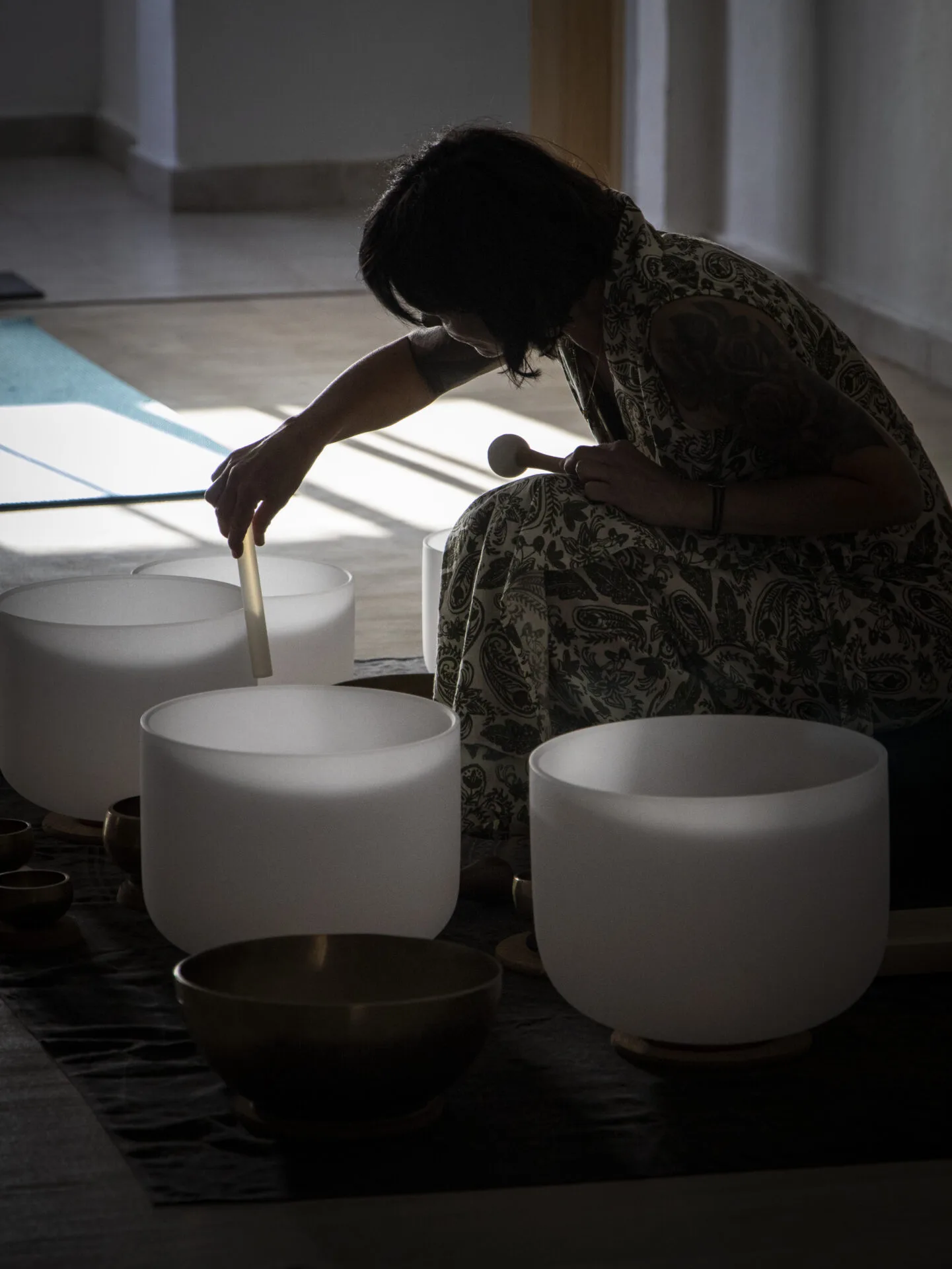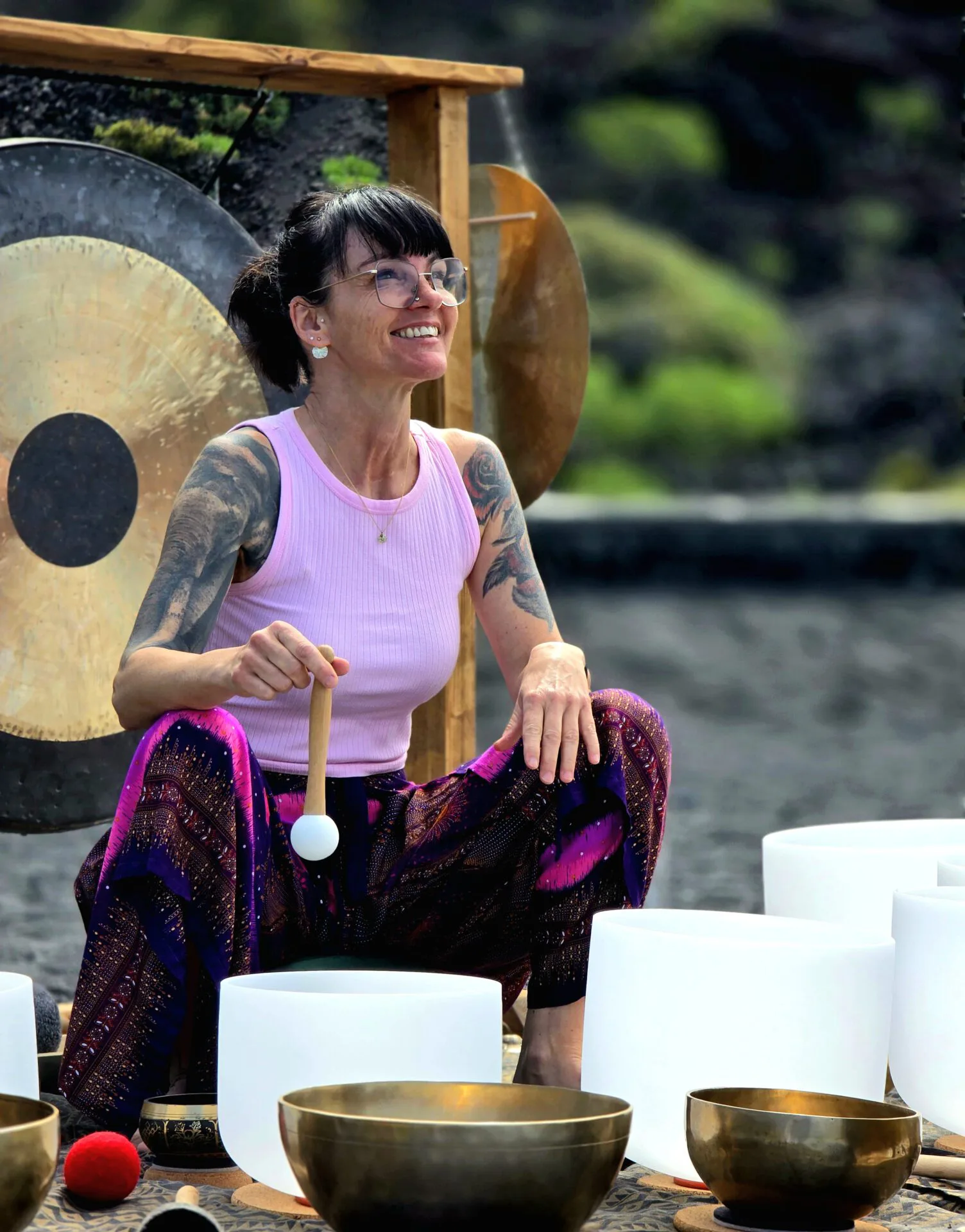Con mis cuencos tibetanos, cuencos de cristal, mi gong y otros instrumentos, puedo ayudarte a recuperar tu ritmo, a revitalizarte y a armonizarte. Incluso puedo activar las fuerzas de autocuración de tu cuerpo para acelerar la recuperación de ciertos padecimientos o enfermedades.